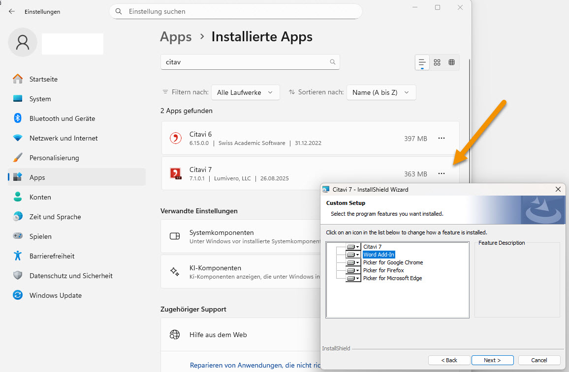 - Deinstalliere Citavi vollständig über die Windows-Einstellungen
